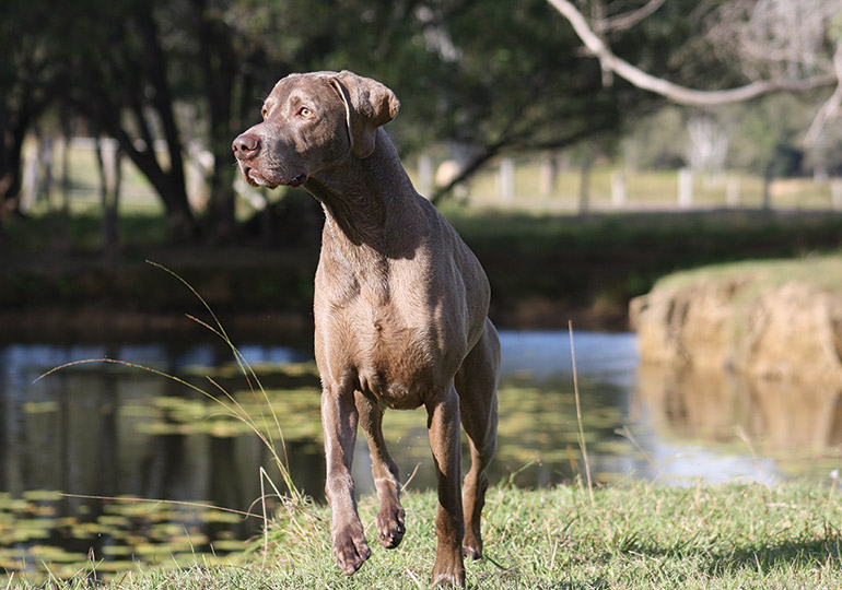 With the advent of civilisation, the larger breeds gradually disappeared and hunters needed a dog with a soft mouth that could hunt smaller animals and birds and was capable of retrieving over land and water. In 1897, amateur sportsmen formed the Weimaraner Club of Germany and drew up the breed’s specifications.