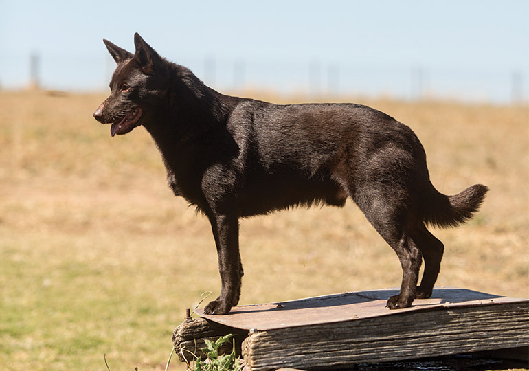 The general appearance is of a dog that is slightly longer than taller, lithe, athletic and muscular. The Kelpie should look and feel like it can do a day’s work without any effort. They have a tractable nature, are highly intelligent, alert and eager to please.