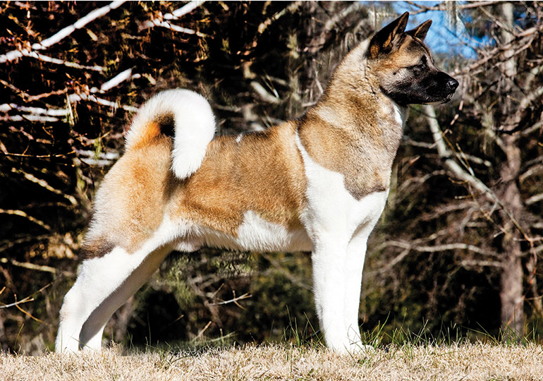 The Akita American should be large, powerful & alert, with much substance and heavily boned. He stands 66-71cms for dogs and 61-66cms for bitches.