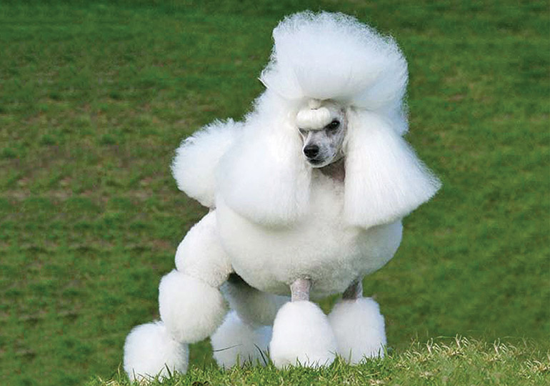The Poodle has a unique, profuse coat and is a very active, intelligent, well-balanced and elegant dog with a proud carriage. It has the temperament, substance and agility required in an excellent companion and performance dog. The Poodle must move freely with a light 'springy' rather than 'bouncy' gait, and retain a steady topline.