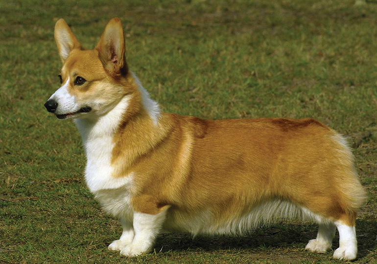 The Welsh Corgi (Pembroke and Cardigan) is a low-set dog with a body somewhat long in proportion to its short legs. It is sturdy, but athletic and active. The breed’s head has a foxy quality and appearance, with large upright ears and a bushy tail that should be carried high when the dog is excited or moving.