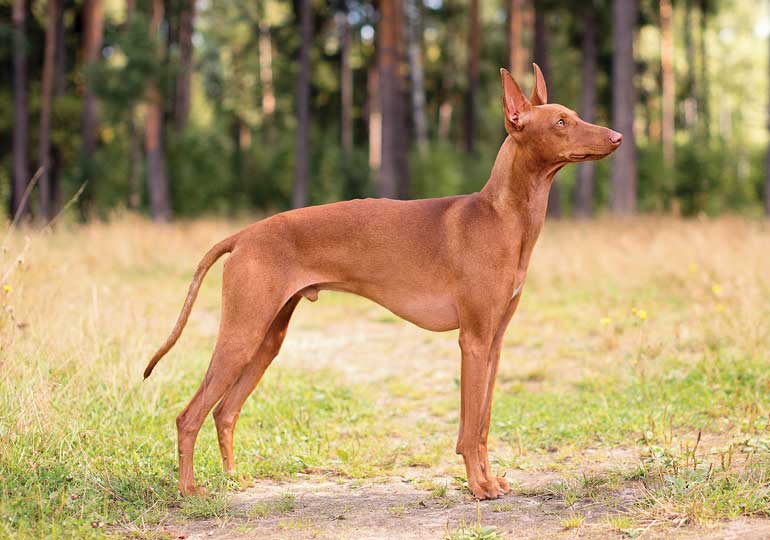 Standing under 50cm (20 inches), the Cirneco (“cheer-NEK-o”; Cirnechi is the plural) is often described as resembling a smaller version of the Pharaoh Hound, its cousin from the island of Malta. This slender but rugged hunter’s coat ranges from light to dark tan or chestnut. The large, upright ears point up the alert expression of the eyes, whose amber or ochre color smartly complements the coat. 2.