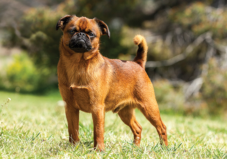 The Griffon Bruxellois is a small (3.2-5kg), square, cobby little dog with a distinctive face and monkey like expression, which is almost human.