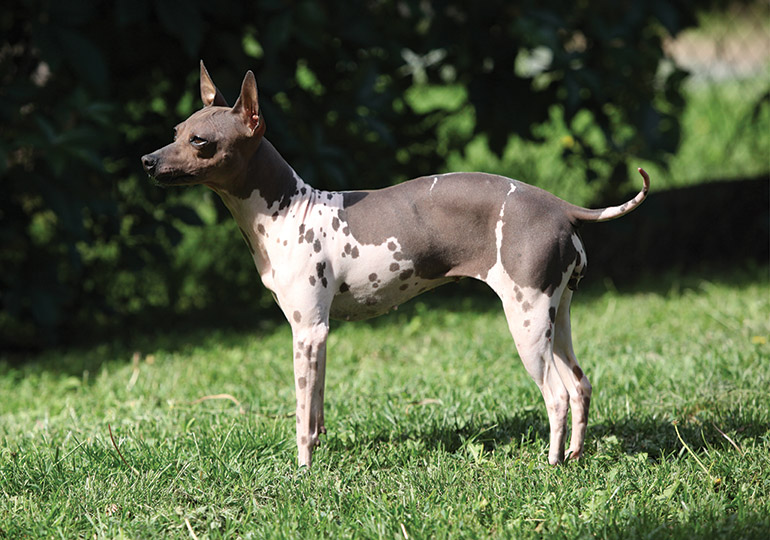 The American Hairless Terrier (AHT) is an intelligent, curious, and energetic breed. Graceful and elegant, the American Hairless Terrier is also strong and athletic. The AHT enjoys participating in agility games like its other terrier cousins. The AHT typically likes to dig, chase small game and will bark when alarmed and will act as a good watch dog. The AHT is not a strong swimmer and should be monitored around water. 2.